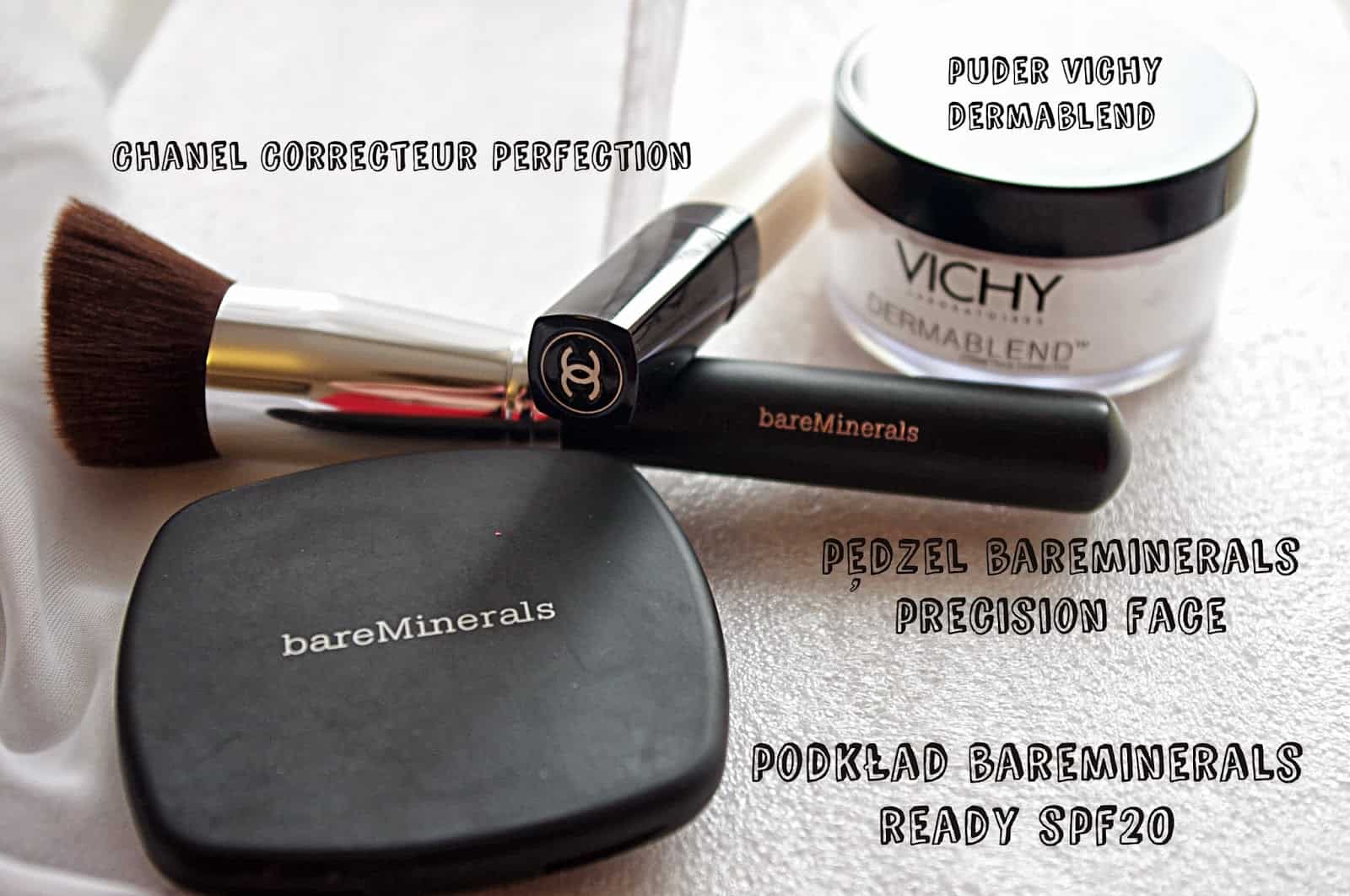 Przyjechałam do mieszkania, wykąpałam się, a wychodząc z wanny spojrzałam na zegarek. Do wyjścia zostało mi ok. 20 minut. I wtedy… Panika! Ubrałam się, jedną ręką suszyłam włosy, a drugą nakładałam krem, balsam, wszystko, co mogłam. Nie miałam czasu do zastanowienia się nad makijażem. Po prostu brałam kosmetyki, które wiedziałam, że mnie nie zawiodą w tej chwili. Były to produkty, które są dla mnie zawsze awaryjnym rozwiązaniem, gdy mam te kilka minut na zrobienie całego makijażu.
