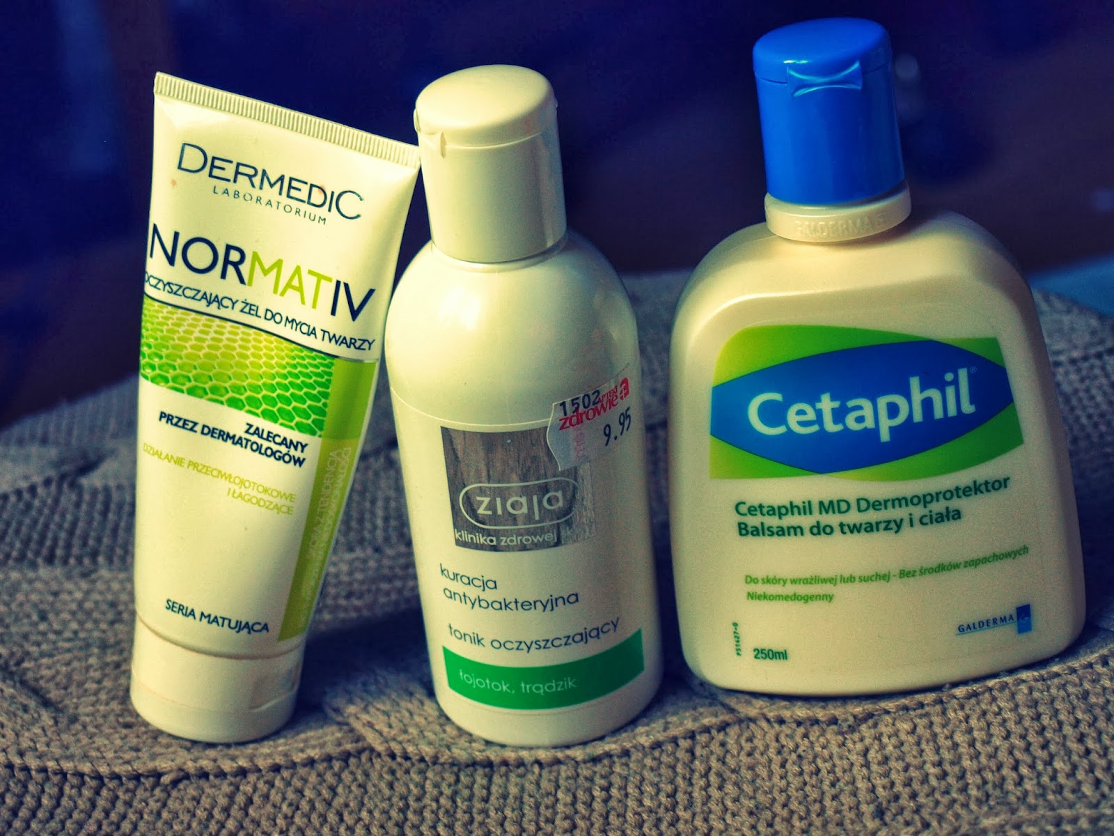 Lubię spać, więc zazwyczaj wstaję najpóźniej jak mogę. Dlatego moja poranna pielęgnacja jest minimalistyczna. Rano myję twarz żelem Dermedic normativ (ok. 25zł). Nakładam go w ilości ziarnka grochu na cleanpod i myję twarz około minuty. Kiedyś przeczytałam, że twarz trzeba myć właśnie ok. przez minutę. Zaczęłam zwracać uwagę na to, jak długo myję twarz i przyznam, że odkąd zaczęłam poświęcać tej czynności >60 sekund jest ona bardziej oczyszczona, także polecam ten sposób.  Następnie przecieram twarz tonikiem ZiajaMed z serii zielonej, czyli łojotok, trądzik ( ok. 10zł). Na koniec nakładam niewielką ilość Cetaphilu. Nie znam innego tak dobrze nawilżającego kremu. Kosztuje ok. 30zł. Nie ma właściwości matujących, ale przez swoje dobre nawilżające działanie wydzielanie sebum maleje, w związku z tym nie świecę się tragicznie w ciągu dnia.