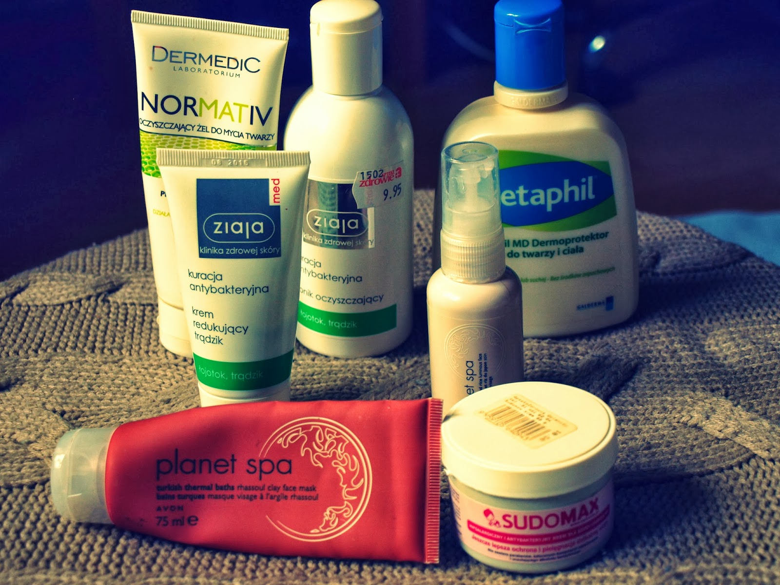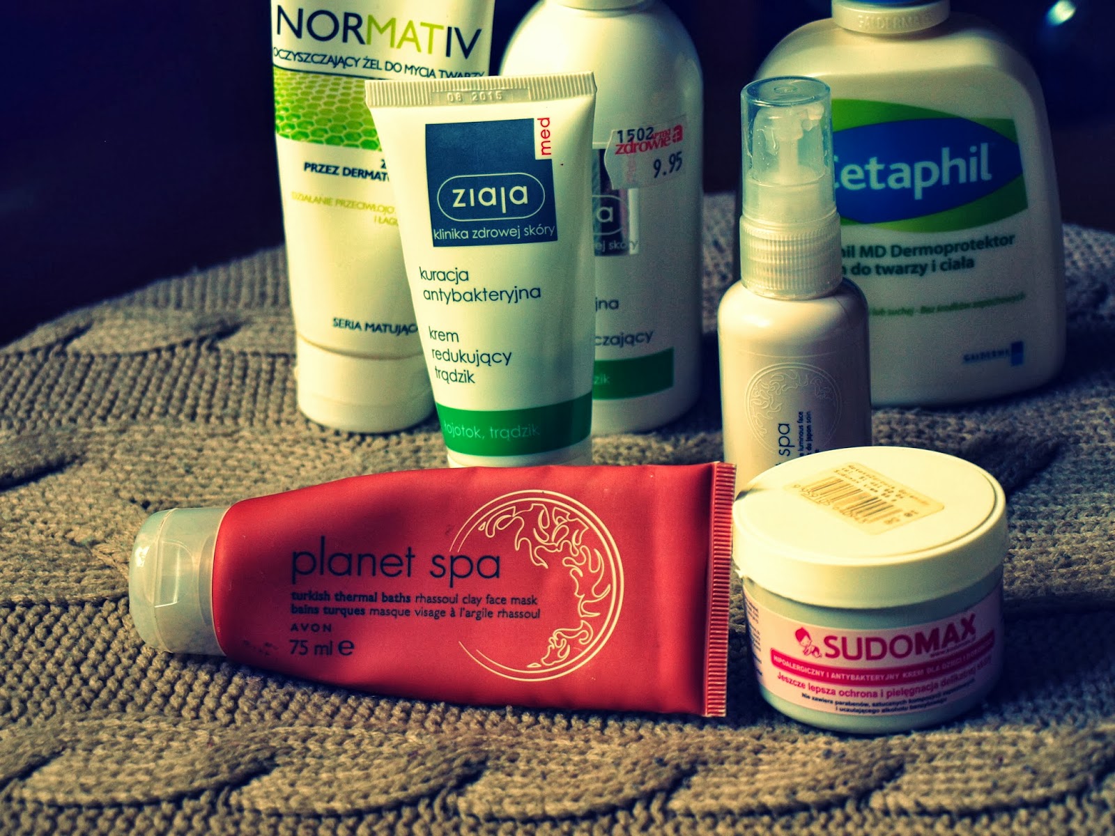 Okazjonalnie, czyli ostatnio jak-mi-się-przypomni używam maseczki z glinką Planet Spa – przeszła mi już miłość do tych maseczek, ale jak krem z Ziaji – wykańczam (ale brzmi…). Maska oczyszcza moją twarz dobrze, ale brakuje mi już efektu WOW. Na podrażnienia oraz pojedyncze wypryski używam maści dla dzieci sudomax. W parze z Cetaphilem nie wysusza, za to świetnie łagodzi różne wypryski i podrażnienia. Od czasu do czasu wykonuję peeling cukrowy. Wyciskam wtedy większą ilość żelu Dermedic na dłoń i dosypuję łyżeczkę cukru.