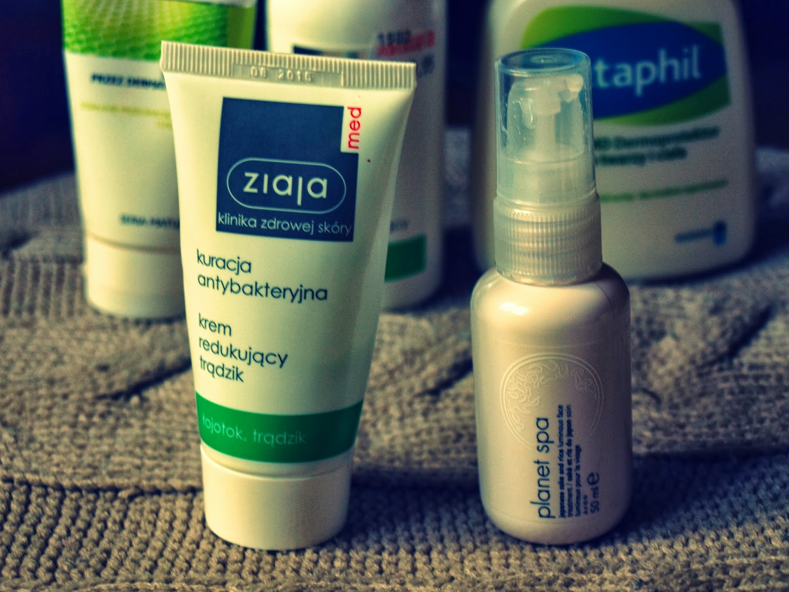 Po demakijażu micelem BeBeauty, tak jak rano oczyszczam twarz żelem Dermedic, przecieram ją tonikiem. Po przetarciu tonikiem Ziaji nakładam rozświetlające serum z Avonu z serii Planet spa. Nigdy nie wiedziałam w jakiej kolejności nakładać produkty na twarz, ale w tym temacie pomogła mi Elle Fowler podpowiadając, że prawidłowa kolejność to serum, potem nawilżanie. Po serum nakładam krem ZiajaMed z tej samej serii, co tonik. Krem redukujący trądzik to delikatny zielony krem, którego zadaniem jest likwidacja wyprysków, nawet tych najmniejszych. Raz działa, raz nie – nie wiem, od czego to zależy. Nie lubię, jak coś się marnuje, dlatego zużywam krem do końca. Po ziajce nawilżenie – Cetaphil. Dużo, mało? Oceńcie!
